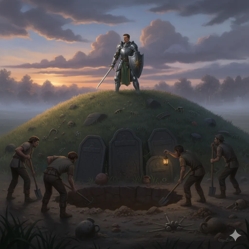 “Focus on the task at hand,” Bancroft muttered to himself. The untouched barrow mound rose before them, its grass-covered dome hiding secrets that might make them rich or dead. Probably both.