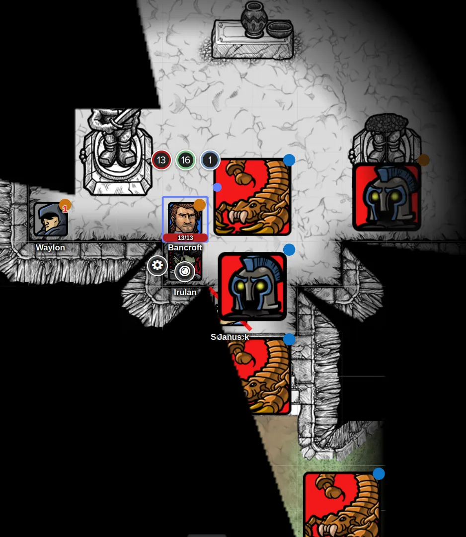 “Trust me. The statues will animate. They’ll fight the scorpions, or at least distract them long enough for us to escape. I’ll protect you.” Bancroft raised his holy symbol. “Shield of Faith!